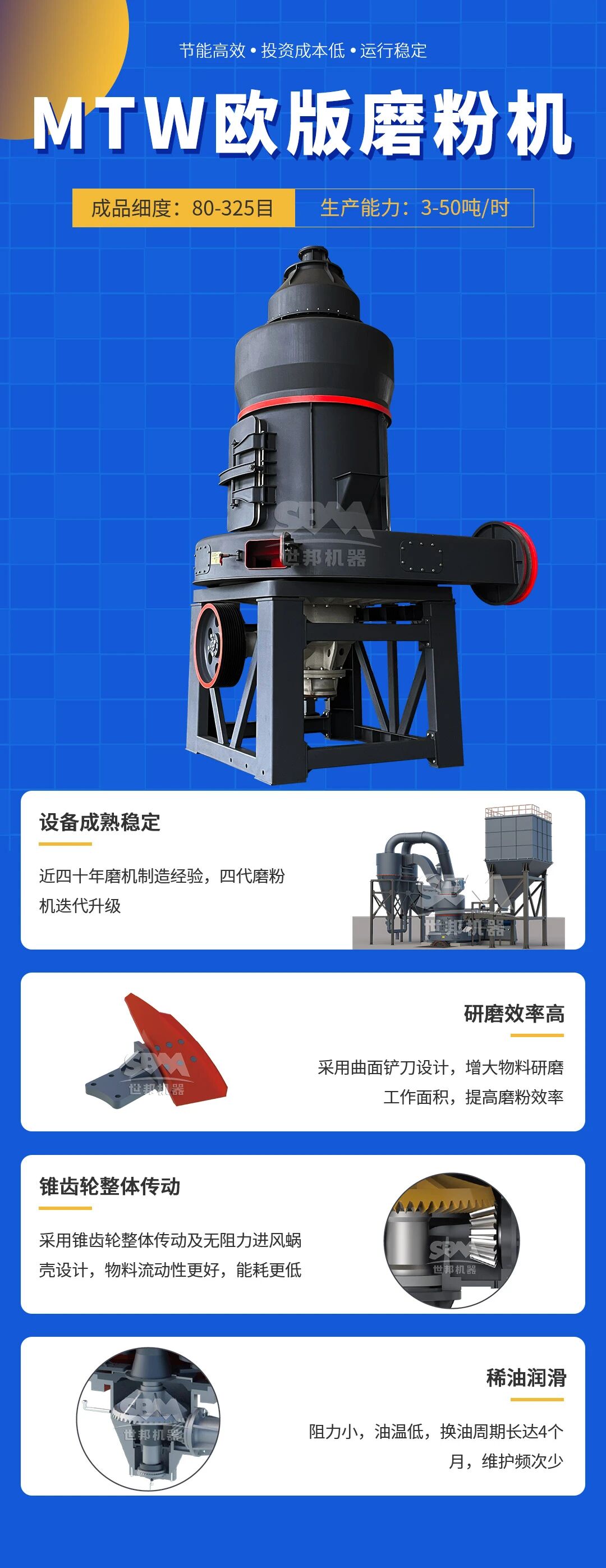 該方案先通過專用烘干設(shè)備將原煤水分降至適宜范圍,再進入磨粉主機進行高效粉磨,確保產(chǎn)品質(zhì)量穩(wěn)定可靠。上海世邦推薦MTW系列歐版磨粉機,整機采用錐齒輪整體傳動,三大傳動系統(tǒng)均為稀油潤滑,具有占地面積小、投資小、見效快、維護方便、節(jié)能環(huán)保等優(yōu)勢。